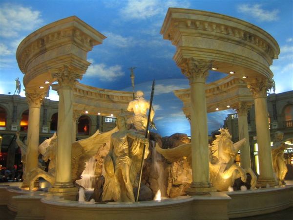因為10日我們已經計劃要看Las Vegas 的show, 也買了票, 所以只剩8日晚上是最後鬼混夜, 當天晚上快速的吃完Danny's, 就衝去Caesars Palace, 果然, 人的潛力是需要被激發的, Caesars 裡面超級大, 有仿羅馬的街道及雕像, 天花板都鋪上天空藍布, 會讓遊客逛得忘了時間, 有還是白天的錯覺, 而我們在這裡也各撇好幾百塊美金~ 我買了一件外套跟包包, 我們老闆娘買了提包跟手拿包, ㄎㄎㄎ 更強的是, 我們從看上某個物品跟決定要買的時間, 大概只有花10來分鐘的掙扎時間, 粉有效率唄!!