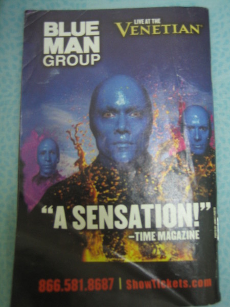 原本我們最想看的是華麗歌舞秀 like Bally's裡的Jubilee, 又覺得應該聽聽美國人的意見, 台灣出發前, 一個美國客人講, 他看Venetian 裡的"Blue Man" show 看了好幾次, 覺得很好看, 到了Las Vegas, 我們問了第一晚請我們吃飯的美國廠商, 他也覺得Blue Man 是很不錯的, 也推薦Magic show, 反倒是覺得Jubilee 好像還好, 後來我們就聽信大家的建議, 訂Blue Man Show, 我們1/7去Venetian 訂票時, 所剩的好視野位子已經不多, 想說, 既然要花錢看show, 就買最貴最前面的位子, 一個人花了US$126